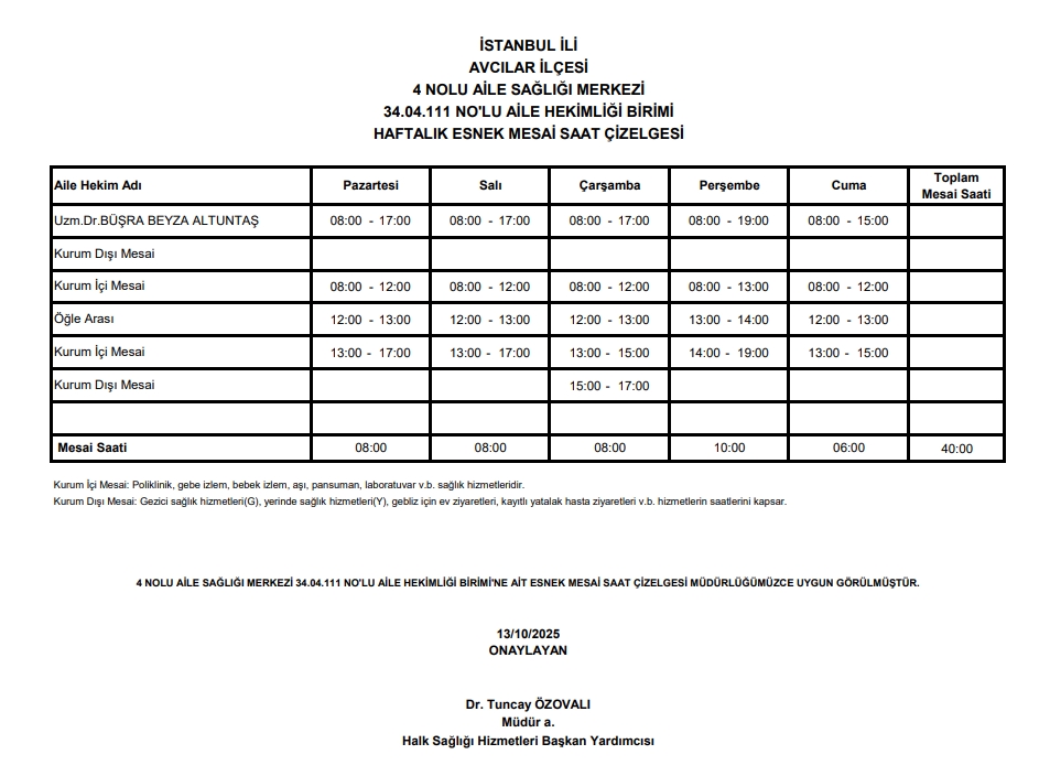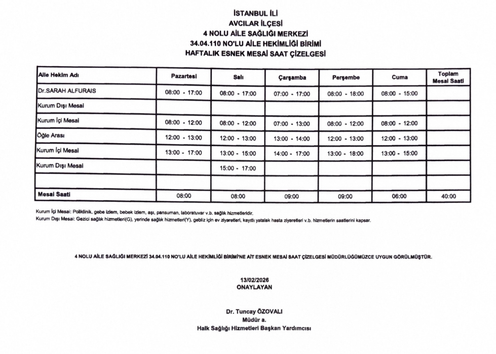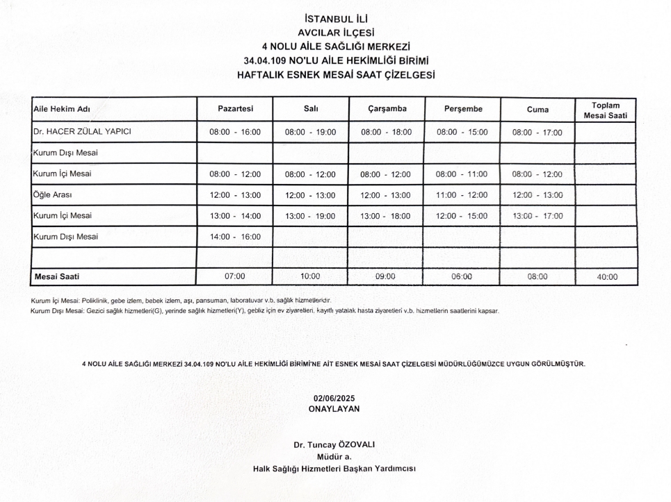 Çalışma Saatlerimiz
